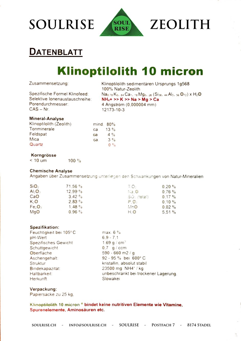 Klinoptilolith 10 Mikron bindet keine nutritiven Elemente wie Vitamine, Spurenelemente, Aminosäuren etc.